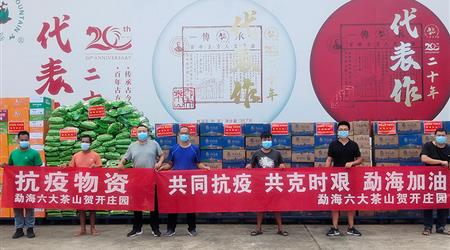 10月6日,六大茶山火速為勐??挂叩谝痪€帶去價值16萬余元的生活物資,為勐??h疫情防控工作獻上綿薄之力。